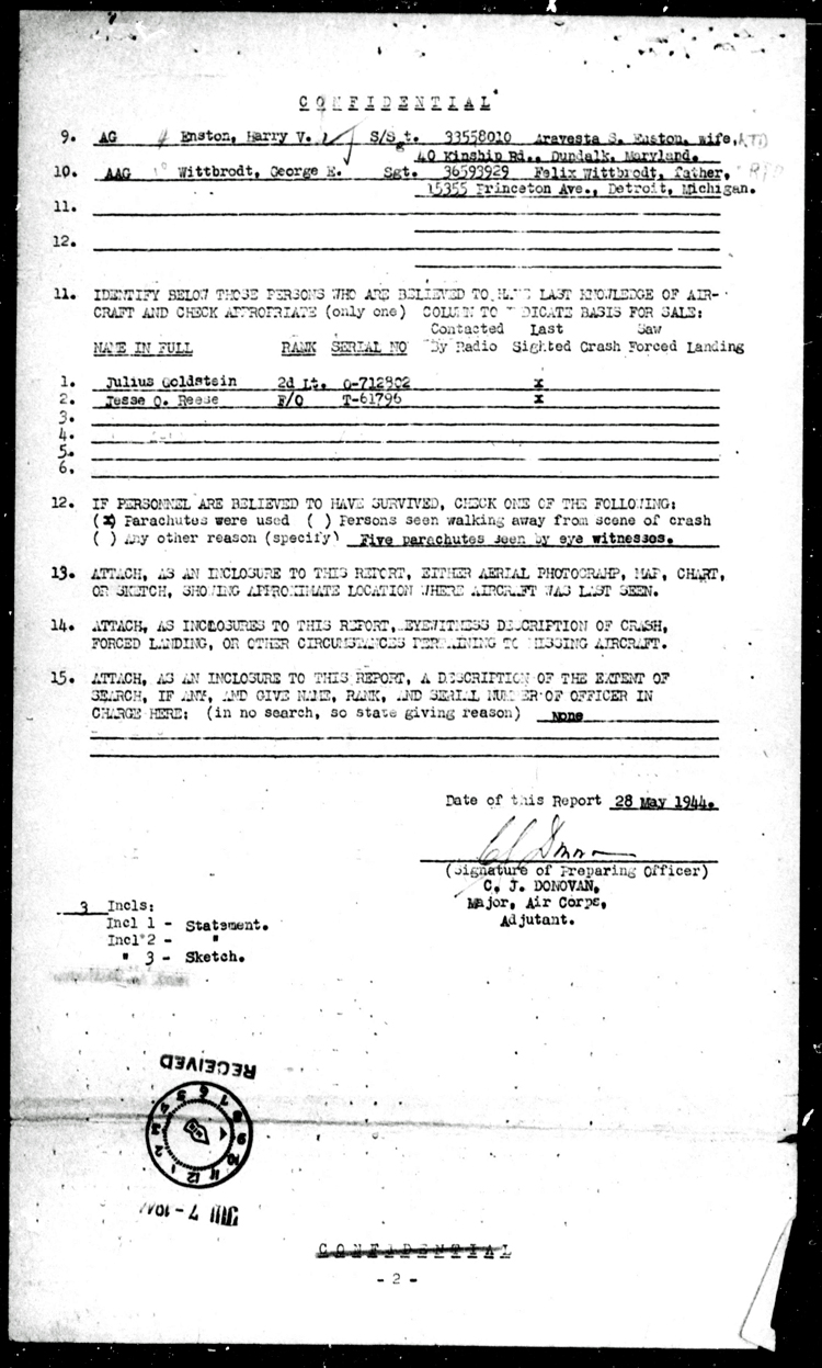 Lost 24 May 44, AUT - MACR 5648 Pg1 / Pg2 - Pilot Donald G. Guldberg