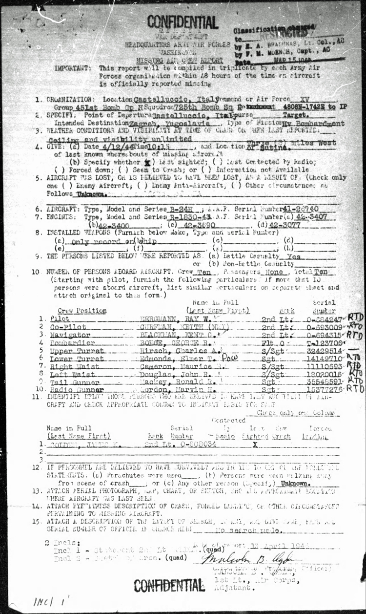 Lost 12 Apr 44, YUG - MACR