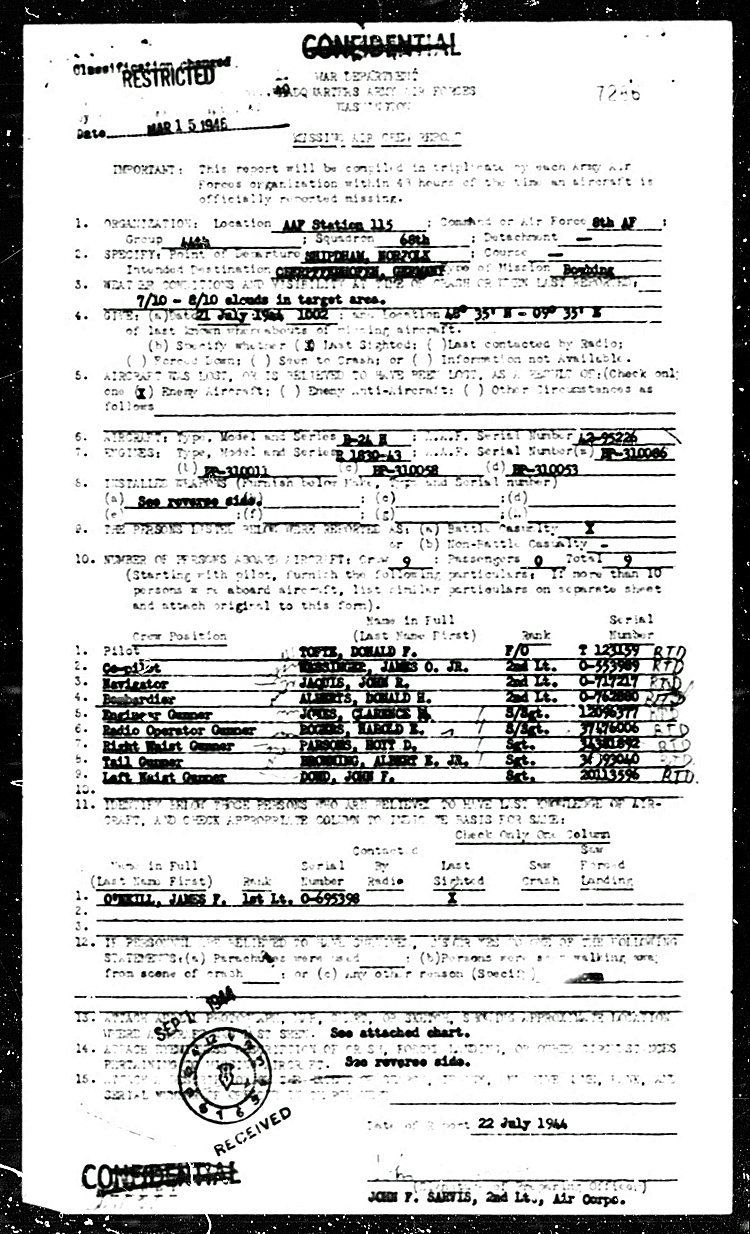 Port (Left) Side - Interned 21 Jul 44, SWI - MACR 7286 - Pilot Donald F. Tofte