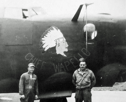 then reappears in 66th BS as QK V+ (1 Jan thru 28 Jan 45). On return from a mission to Dortmund on 28 Jan 45, already badly damaged, the aircraft was shot down by fighters after the crew bailed out. It crashed in dense woods between the villages of Groesbeek and Berg-en-Dal, south east of Nijmegen, the Netherlands.