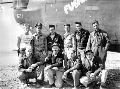 | Standing (L-R) T/Sgt Jean V. Waugh 2nd Lt Julian S. Santina S/Sgt Edward Enghaus T/Sgt Stanley F. Mizell S/Sgt Robert G. Chase S/Sgt Lloyd W. Malchow |