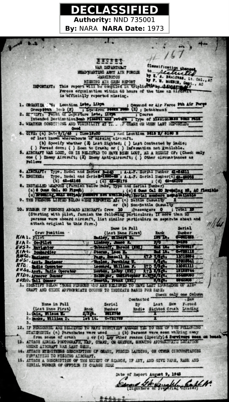 01 Aug 43 - Ditched off Turkish Coast (MACR 167)