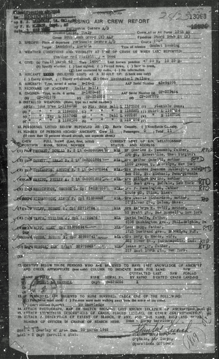 Lost 19 Mar 45, AUT - MACR